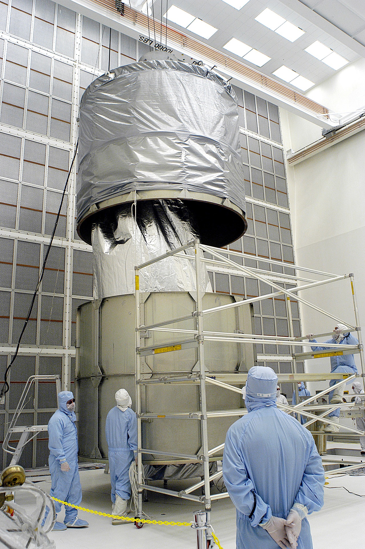 The Spitzer Space Telescope was enclosed in a protective canister, transferred to the top of a Delta II rocket, but not launched due to engineering concerns that delayed the launch. The rocket initially meant to launch Spitzer was then used for a Mars mission, which had a more restricted launch window, and the Spitzer launch was delayed until August 25, 2003.