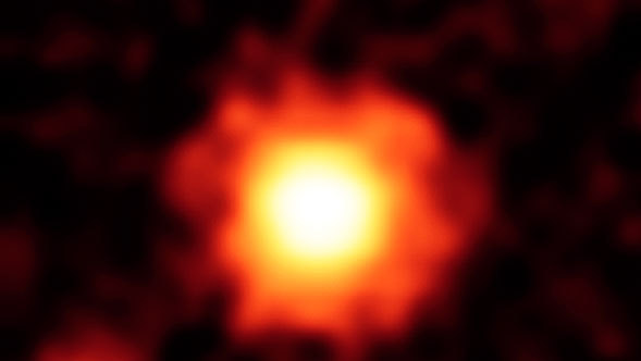 NASA's Spitzer Space Telescope captured this infrared image of a giant halo of very fine dust around the young star HR 8799, located 129 light-years away in the constellation Pegasus. The brightest parts of this dust cloud (yellow-white) likely come from the outer cold disk similar to our own Kuiper belt (beyond Neptune's orbit). The huge extended dust halo is seen as orange-red.