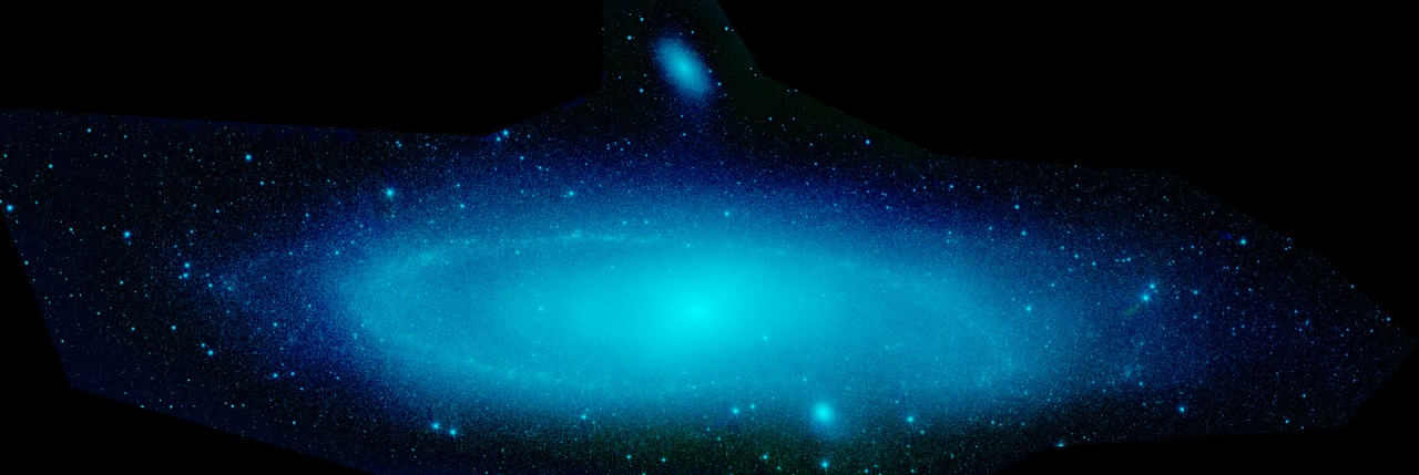 Because this galaxy is so large, the infrared images had to be stitched together out of about 3,000 separate Spitzer exposures. The light detected by Spitzer's infrared array camera at 3.6 and 4.5 microns is sensitive mostly to starlight and is shown in blue and green, respectively.