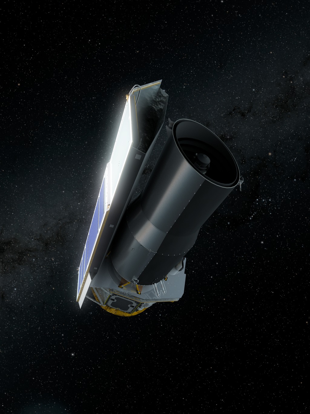 This artist's concept depicts NASA's Spitzer Space Telescope in space much as it would appear to an observer at the end of its mission on January 30, 2020.