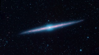 Spiral galaxies are as varied as snowflakes, and almost as flat. This becomes clear when one observes a galaxy seen edge-on, as with NGC 4565, also known as the “Needle Galaxy.” This infrared image, made with archival data from the cryogenic phase of NASA’s Spitzer Space Telescope, reveals the striking geometry in this spiral galaxy more clearly than with visible light.