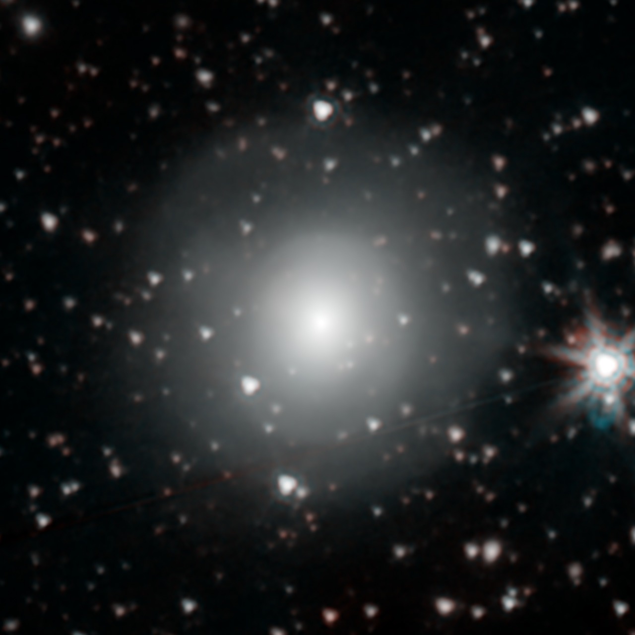 NASAs Spitzer Space Telescope has provisionally detected the faint afterglow of the explosive merger of two neutron stars in the galaxy NGC 4993. This image shows the Spitzer data, but the faint light from the explosion is to faint to be easily seen mixed in the light of the other stars in the...