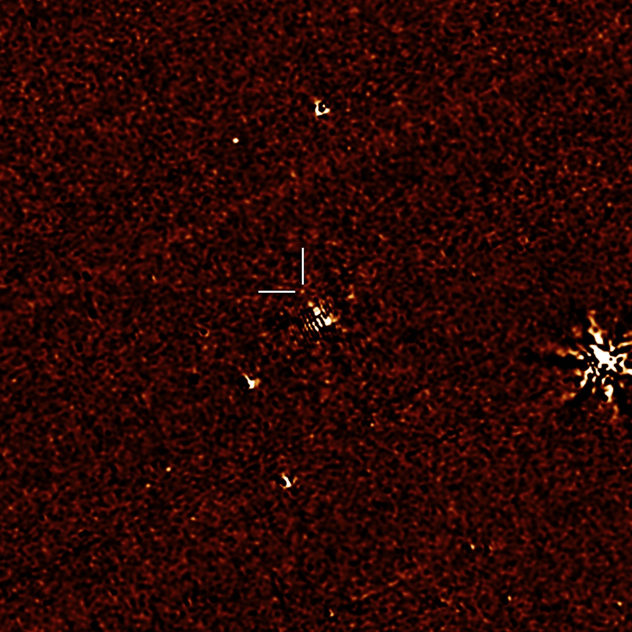 NASAs Spitzer Space Telescope has provisionally detected the faint afterglow of the explosive merger of two neutron stars in the galaxy NGC 4993. The dot framed by the markers may be one of the last detections made in infrared light of this event.