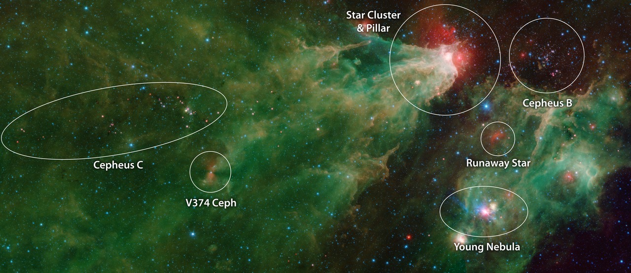 Cepheus C and Cepheus B (IRAC Annotated)
