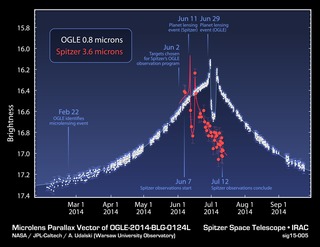 This plot of data from NASA's Spitzer Space Telescope reveals the light from a "super Earth" called 55 Cancri e. The planet is the smallest yet, beyond our solar system, to reveal its direct light.