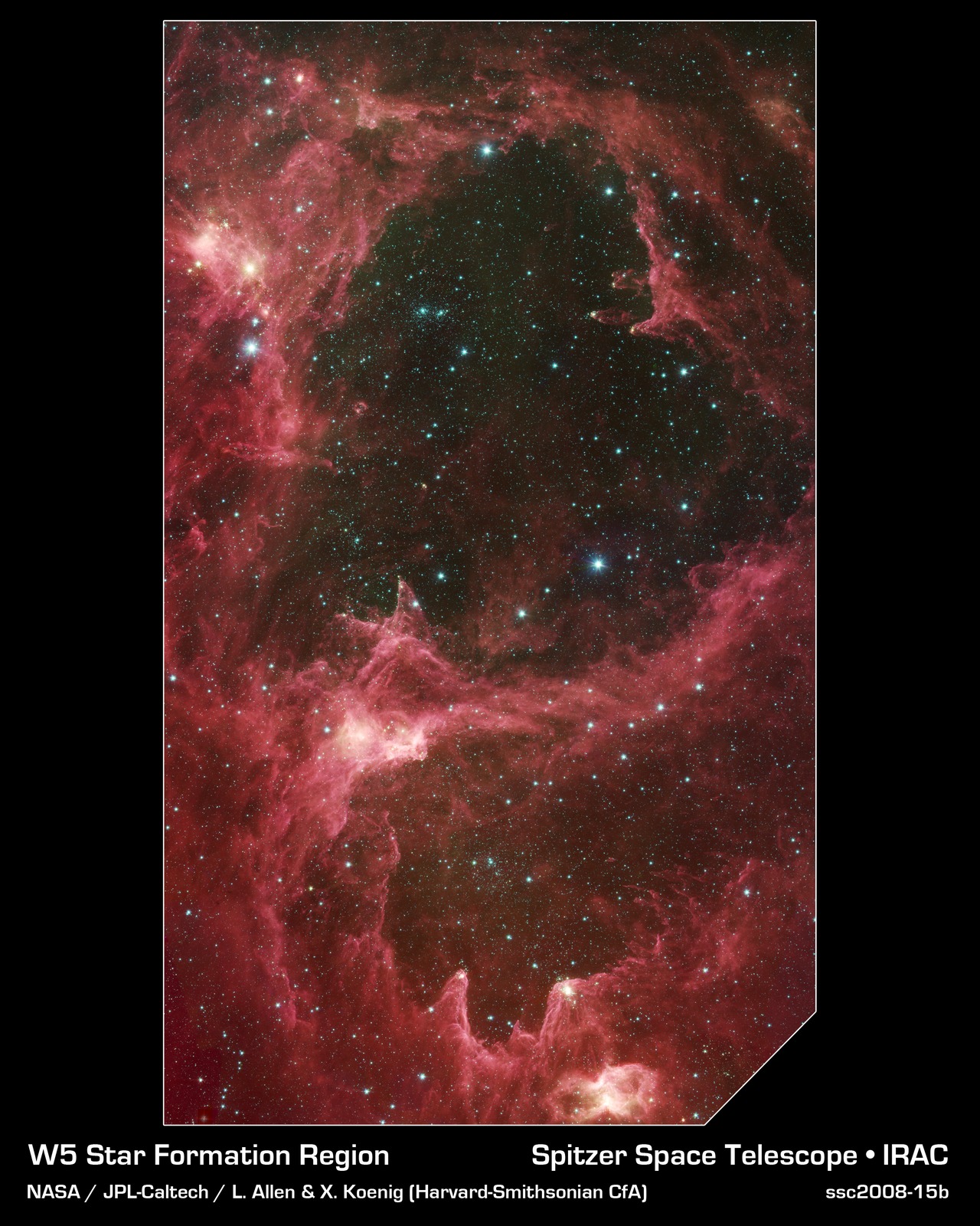 Generations of star formation can be seen in this infrared portrait of W5 from the Spitzer Space Telescope