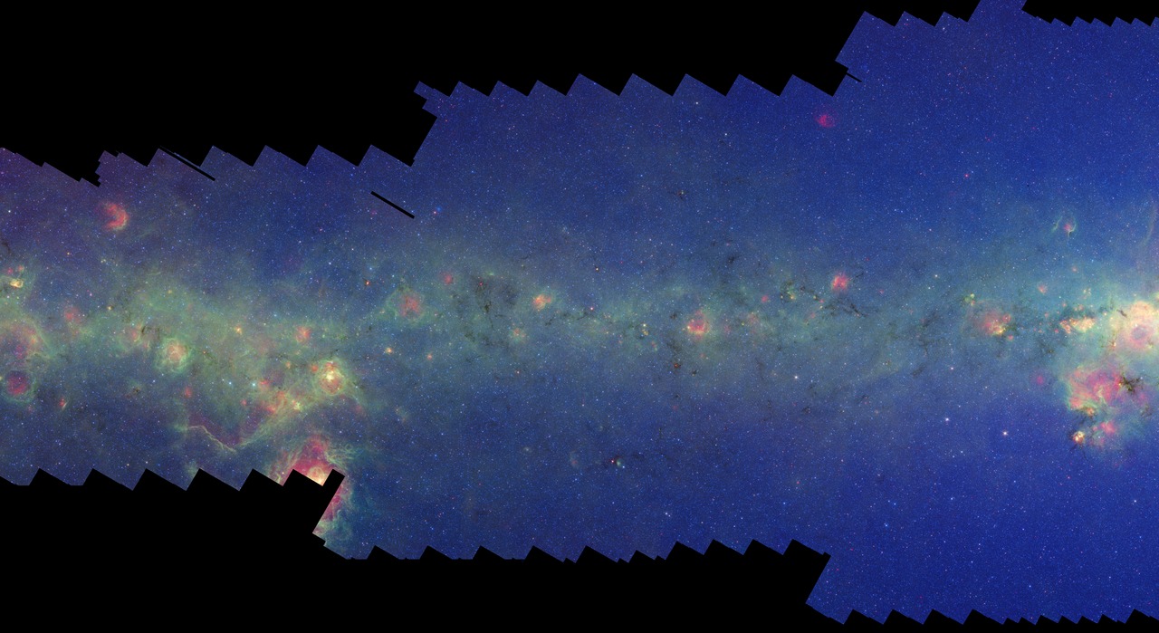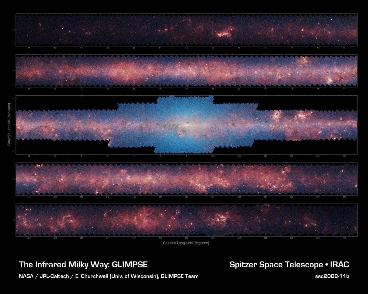 More than 800,000 frames from NASA's Spitzer Space Telescope were stitched together to create this infrared portrait of dust and stars radiating in the inner Milky Way.