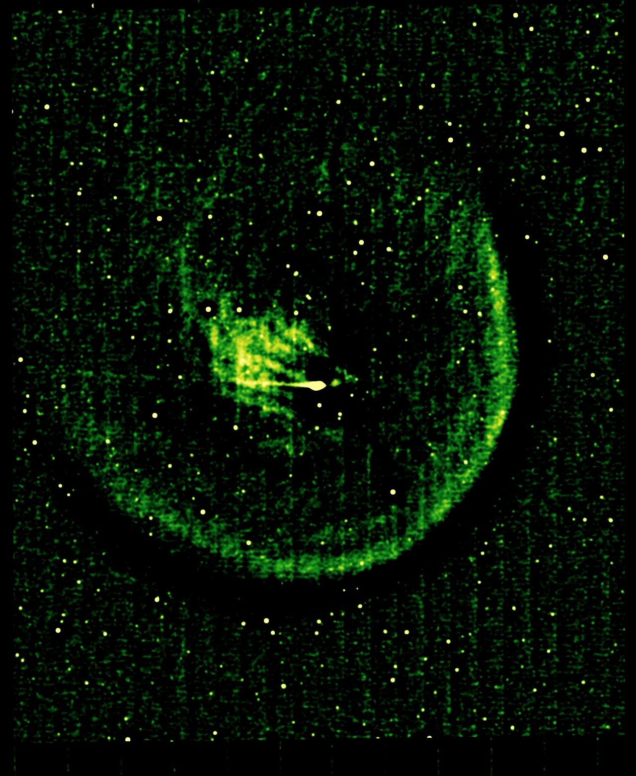 NASA's Spitzer Space Telescope captured the picture on the left of comet Holmes in March 2008, five months after the comet suddenly erupted and brightened a millionfold overnight. The contrast of the picture has been enhanced on the right to show the anatomy of the comet.