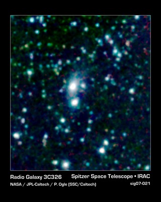 Ogle and his colleagues initially set out to study a set of distant galaxies, called radio galaxies, about one billion light-years away. Radio galaxies are named after the radio-emitting jets that scream out of the black holes at their centers. Though these jets are powerful, their black holes are relatively sleepy and don't otherwise give off a lot of energy. When the astronomers scanned 72 galaxies using Spitzer's infrared vision, they noted a handful that were quite unusual.