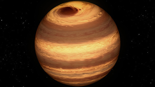 "The star is the size of Jupiter, and its storm is the size of Jupiter's Great Red Spot," said John Gizis of the University of Delaware, Newark. "We know this newfound storm has lasted at least two years, and probably longer." Gizis is the lead author of a new study appearing in The Astrophysical Journal.