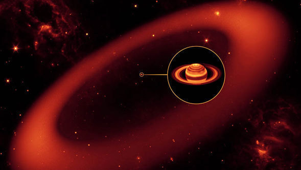 PASADENA, Calif. – NASA's Spitzer Space Telescope has discovered an enormous ring around Saturn –€” by far the largest of the giant planet's many rings.